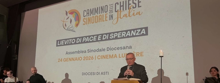 Sabato 24 gennaio 2026 si è svolta presso il Cinema Lumiere, di proprietà dell’Oratorio San Giovanni Bosco di Asti, ed i locali attigui dell’Oratorio l’Assemblea Diocesana Sinodale convocata come ha scritto il Vescovo di Asti Marco Prastaro nella lettera di invito per “riflettere e decidere come proseguire il cammino del Sinodo e come rendere lo stile sinodale sempre più costitutivo della nostra Chiesa”.