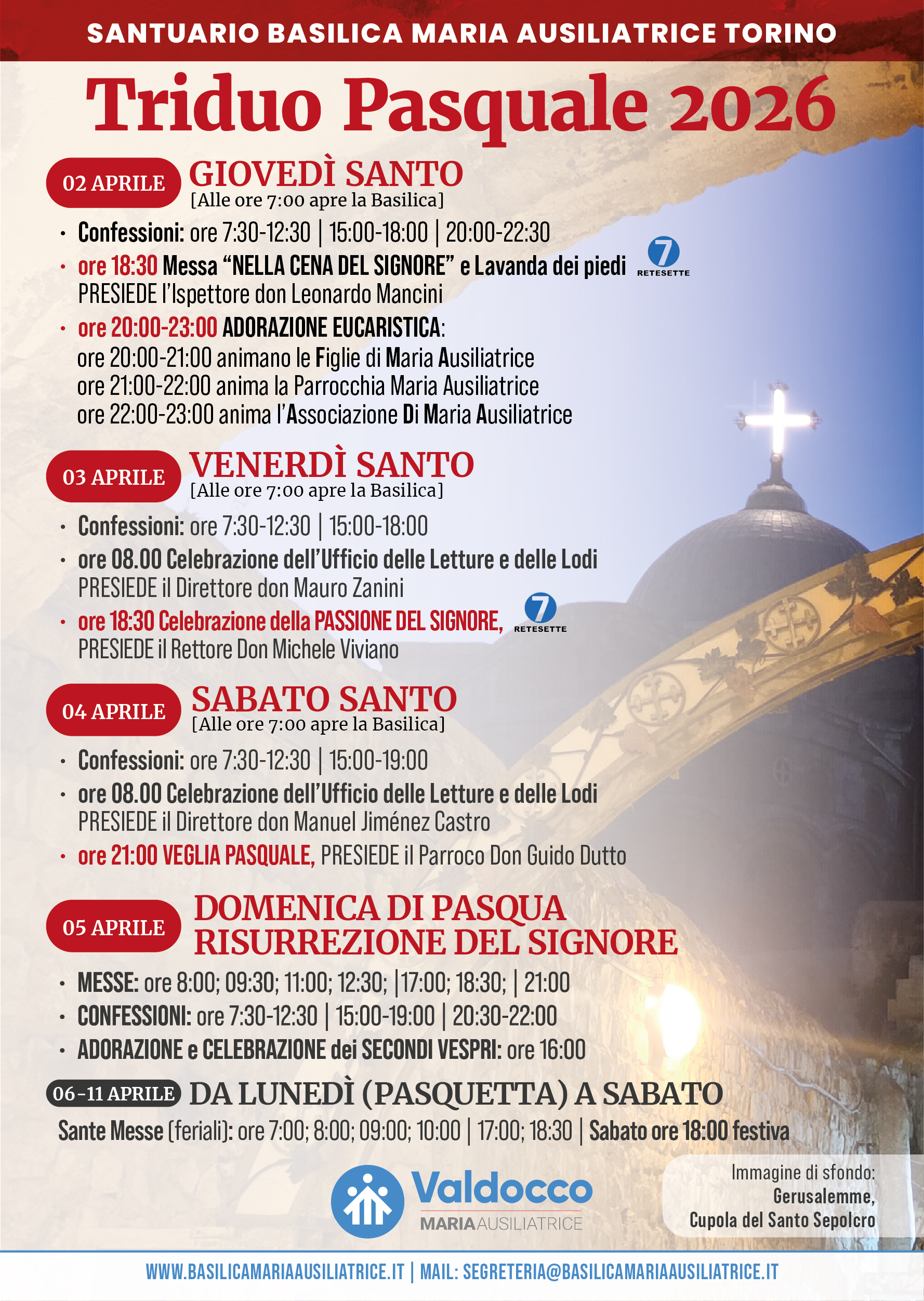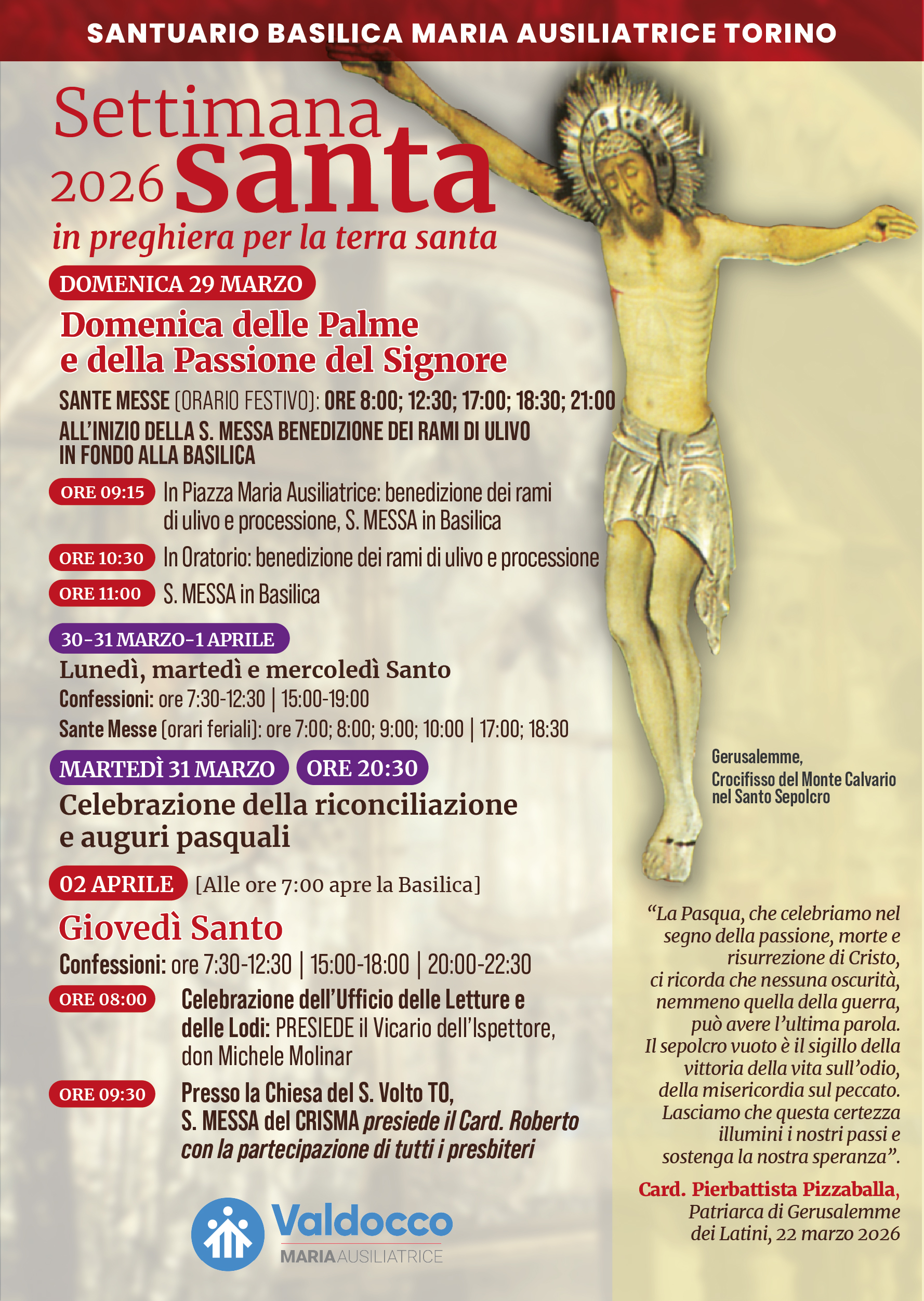 Basilica Maria Ausiliatrice: Settimana Santa 2026 in preghiera per la Terra Santa