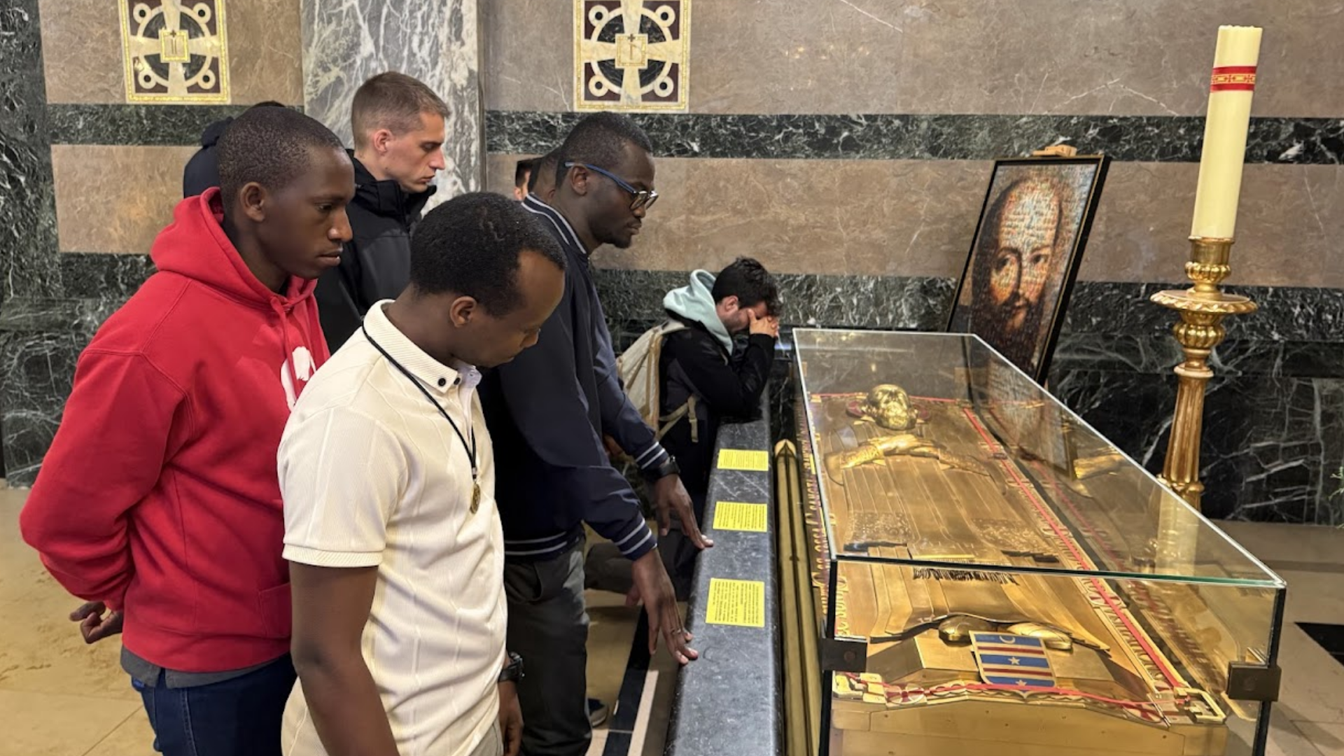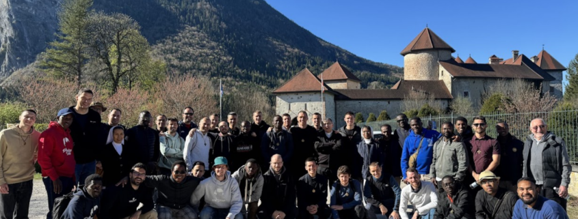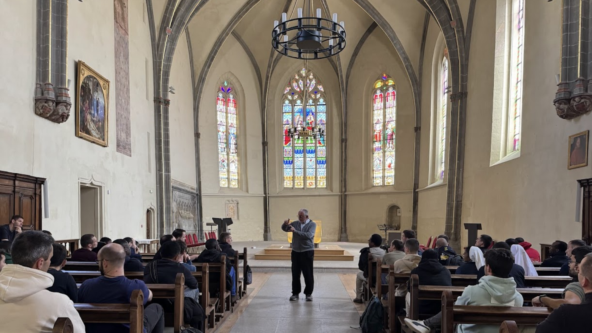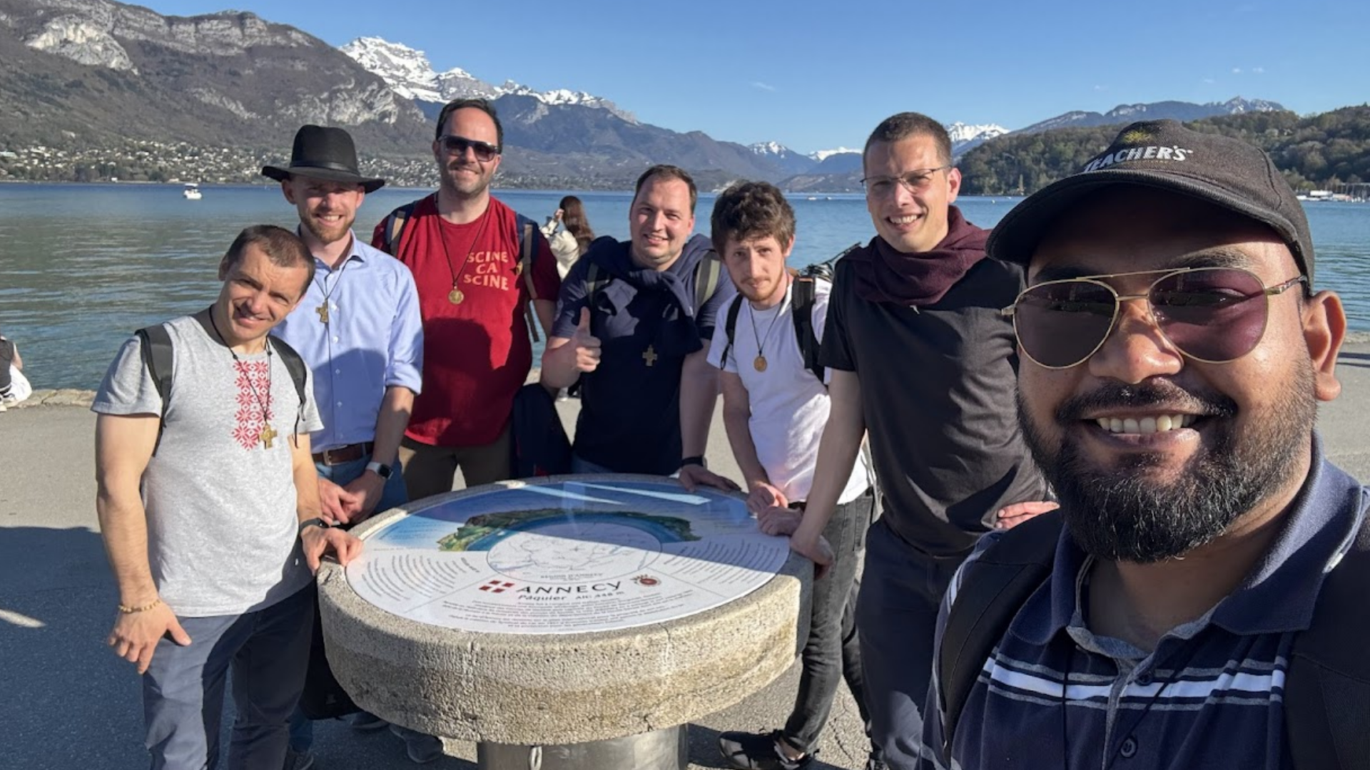 Nel pomeriggio, ci siamo persi — nel senso più bello del termine — tra le calli di Annecy. Accompagnati da don Gianni, abbiamo visitato alcune chiese importanti per l’esperienza del santo vescovo, lasciandoci prendere per mano da Maria con la recita di una decina del rosario in ogni tappa.  Presso la Chiesa di San Maurizio abbiamo ricordato la prima comunione e la cresima di Francesco di Sales, rinnovando la consapevolezza di quanto i sacramenti siano fondamentali per la nostra spiritualità. All’interno di Notre Dame de Liesse (Nostra Signora della Gioia) abbiamo respirato e cantato la bellezza di avere una mamma in cielo. Nella Cattedrale di San Pietro abbiamo rinnovato il nostro zelo per le anime, sull’esempio di Francesco il cui cuore bruciava di ardore apostolico. Infine, abbiamo sostato all’interno della Chiesa di San Francesco di Sales, detta anche Chiesa degli Italiani in quanto qui la comunità italofona di Annecy celebra le sue funzioni. C’è stato spazio anche per un po’ di tempo libero, per un caffè o una passeggiata vista lago, prima di dirigerci verso il Centre Jean XXIII per la cena e una serata trascorsa tra gioco, fraternità e tifo calcistico.