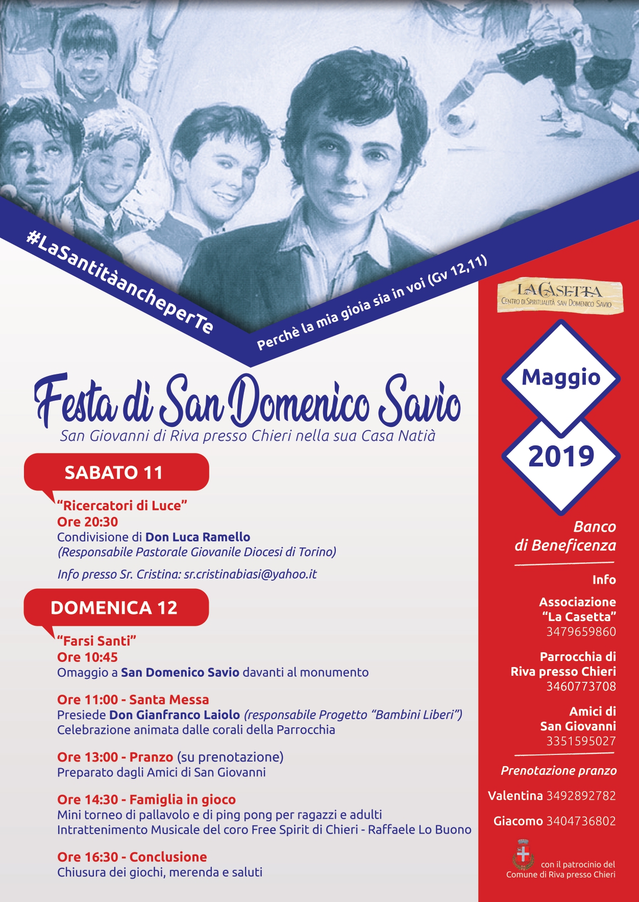 Sabato 11 Maggio 2019 e Domenica 12 Maggio 2019 si svolgerà la Festa di San Domenico Savio a San Giovanni di Riva presso Chieri.