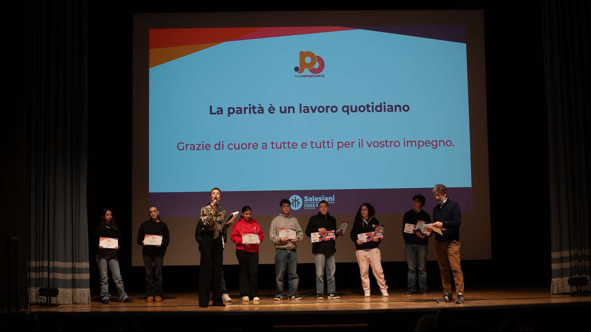 La giornata si è conclusa con un momento di festa e riconoscimento: la premiazione dei ragazzi dei centri CNOS-FAP che hanno partecipato al contest fotografico dedicato al tema delle pari opportunità. Attraverso le loro immagini, i giovani hanno raccontato il proprio senso di equità e inclusione nel mondo del lavoro, offrendo spunti creativi e profondi.