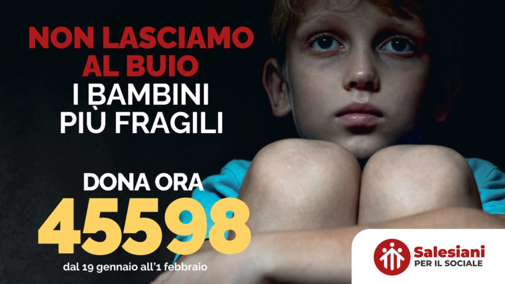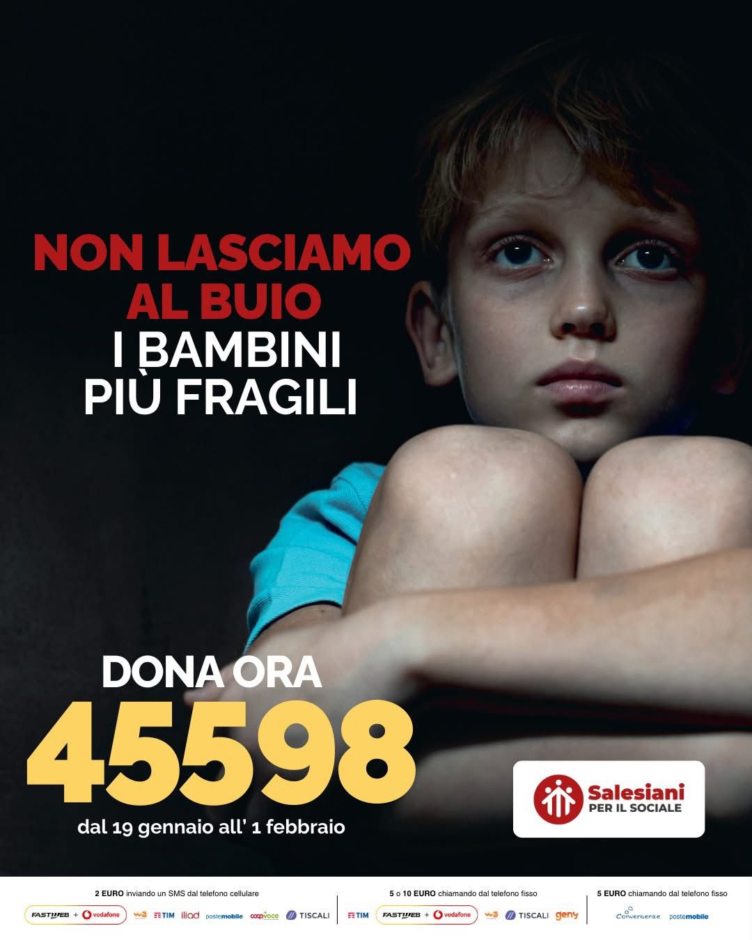 Dal 19 gennaio all’1 febbraio 2026, Salesiani per il sociale promuove la Campagna di sensibilizzazione e raccolta fondi “Non lasciamo al buio i bambini più fragili”: si può donare chiamando da rete fissa o inviando un SMS al numero solidale 45598.