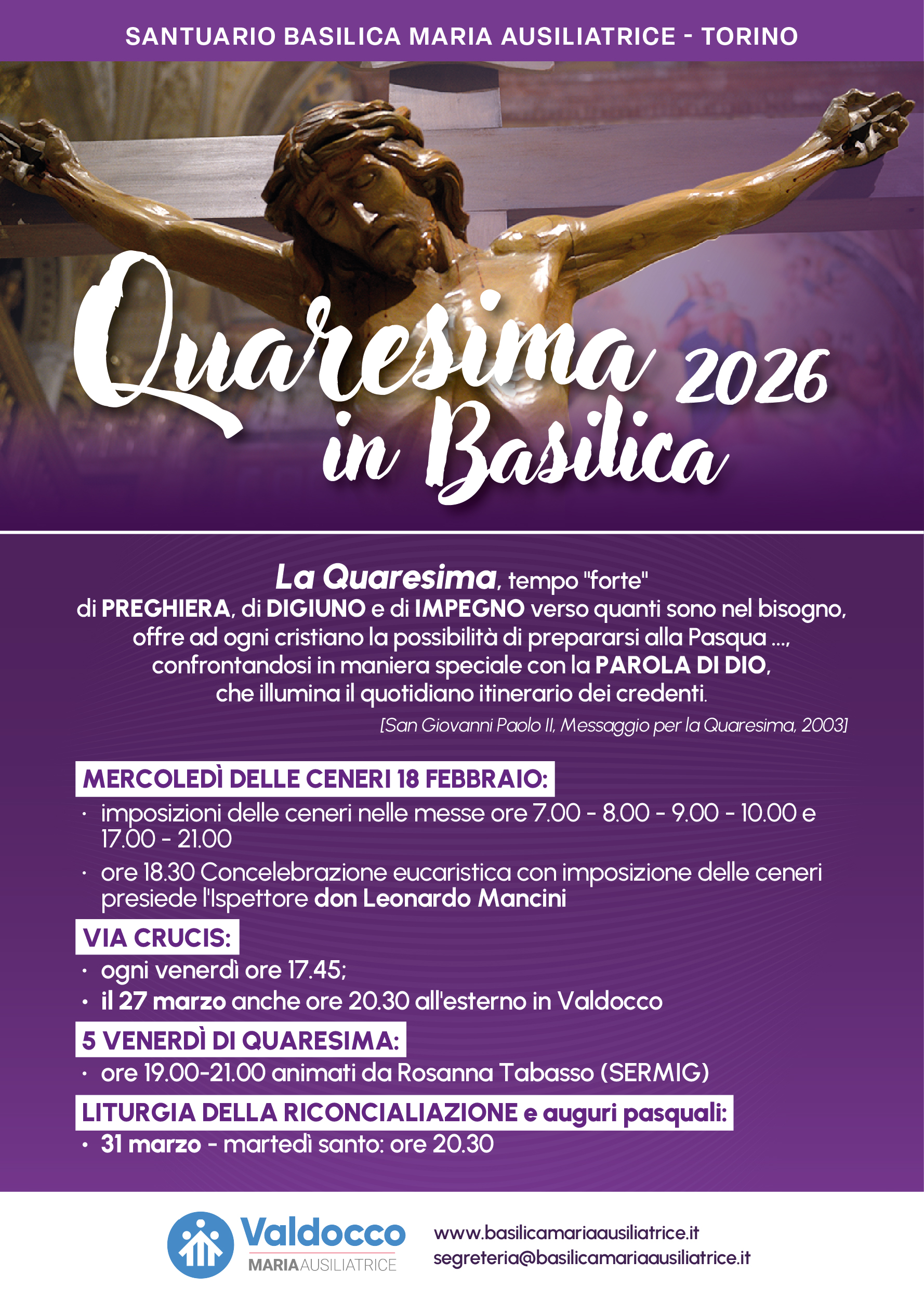 Quaresima 2026 in Basilica Maria Ausiliatrice