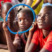 Un tubo di gomma in mano a un ragazzo di Côte-Matève (Repubblica del Congo) diventa un cerchio, usando un tronchetto di legno per unirne le estremità. È un rifiuto, un oggetto rotto e abbandonato, prontamente conquistato per farne un trofeo o un gioco. Ma è anche qualcosa di più: uno strumento per attirare l’attenzione di chi guarda e scatta la fotografia. Per adesso Ngimbi ha in mano soltanto un oggetto recuperato fra l’immondizia: domani avrà penna e quaderni per costruire il suo futuro.